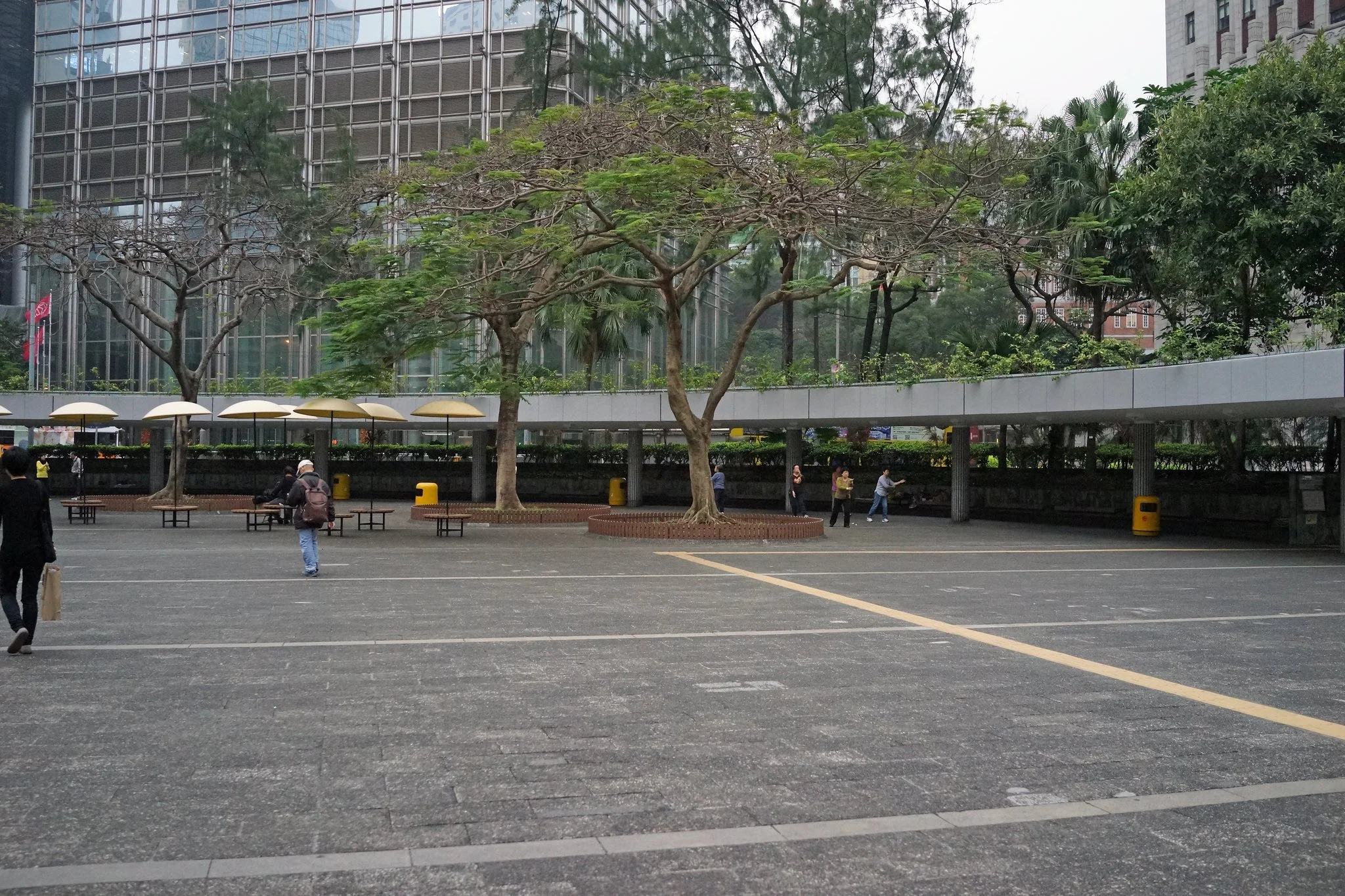 1980s - Present: The garden matures as a public space. It becomes a venue for daily leisure (such as tai chi), weekend gatherings (notably by domestic helpers), and occasional political rallies and demonstrations (which are no longer allowed,) owing to its prime location adjacent to the Legislative Council Complex and Court of Final Appeal Building.