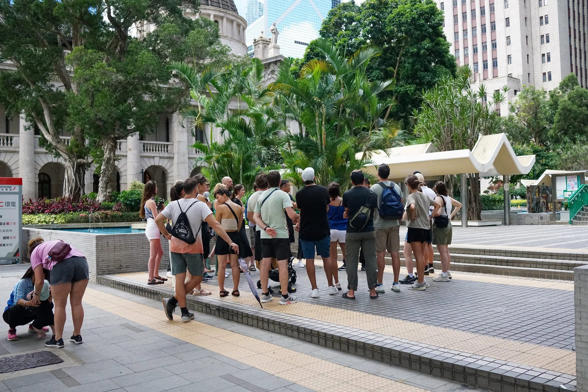 I always try and turn this into an engaging point: "Look across - HSBC has its famous bronze lions, Stephen and Stitt. Right next door at the old Bank of China building you see traditional granite foo dogs. One pair feels very British-Hong Kong, the other very Chinese. Yet both do the same job: guarding their bank and inviting good fortune. In Hong Kong style, they coexist peacefully on the same street, just like the banks themselves have learned to do business side by side despite the bigger feng shui dramas happening higher up with the new tower."