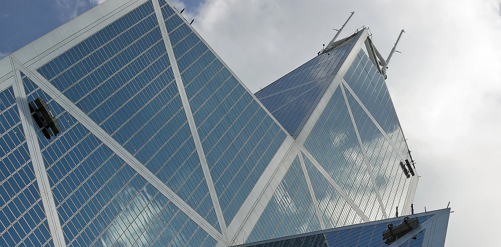 In architectural terms, they are functional extensions of the building’s height and technical systems, not symbolic elements. The architect I.M. Pei and his team designed the tower with a tapering, crystalline form inspired by bamboo shoots (symbolising growth and strength in Chinese culture), and these masts complete the vertical expression at the very top.