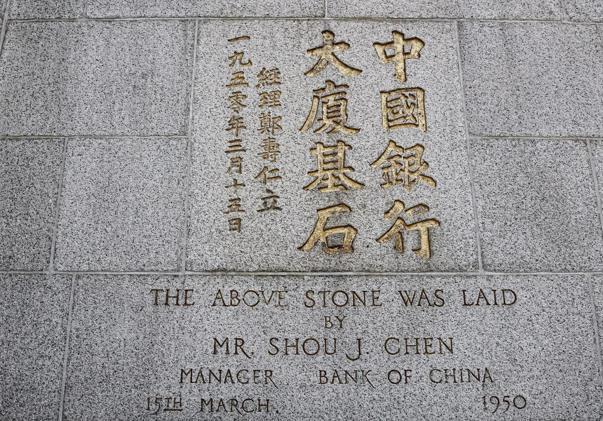 Now for the interesting story, if you are facing the Foo Dogs at the main entrance, walk left around the corner to the side of the ban, this is the building's side/east wall along Des Voeux Road Central (facing toward the Cheung Kong Centre and Admiralty direction)