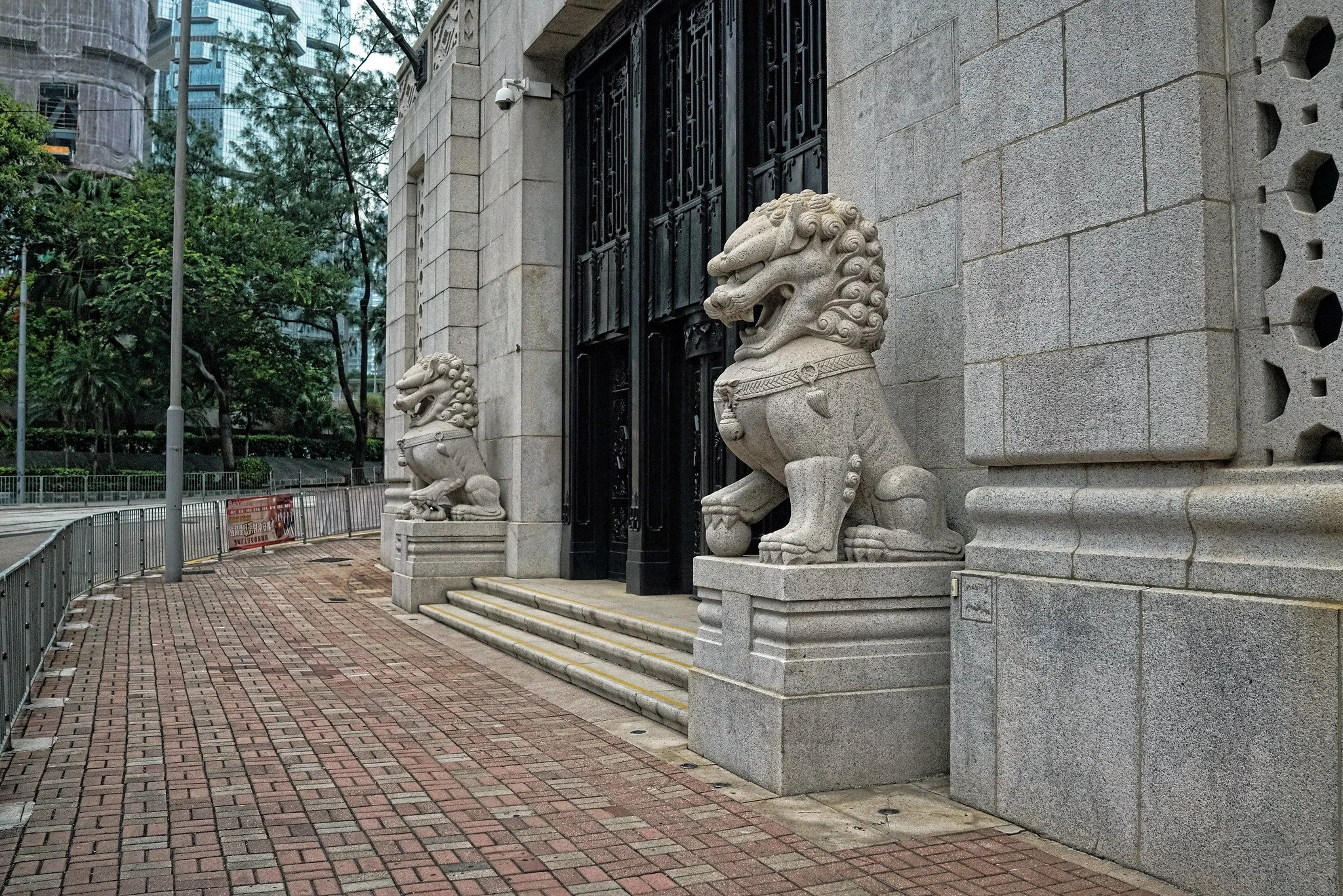 This older building has a fascinating dual-guardian setup with two distinct pairs of lions, reflecting Hong Kong's blend of Chinese tradition, Western influence, and mid-20th-century style. Here's the full story: