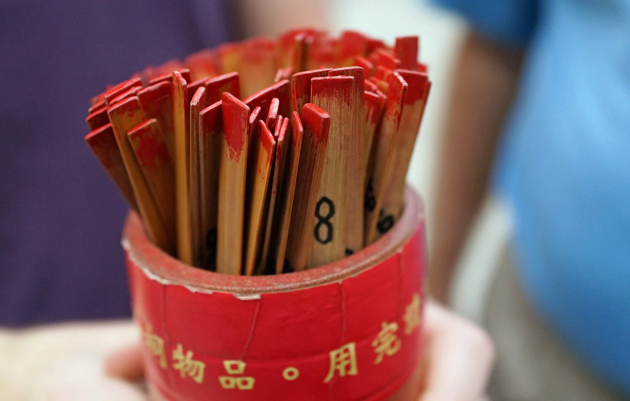 Drawing kau cim (bamboo fortune sticks) at temples such as Wong Tai Sin. please see all my comments above - After lighting incense and stating your intention, you shake a cylinder until a numbered stick falls out; it’s then matched to a corresponding oracle slip for guidance. The ritual feels reflective and interactive, offering a moment of quiet anticipation amid the incense haze.