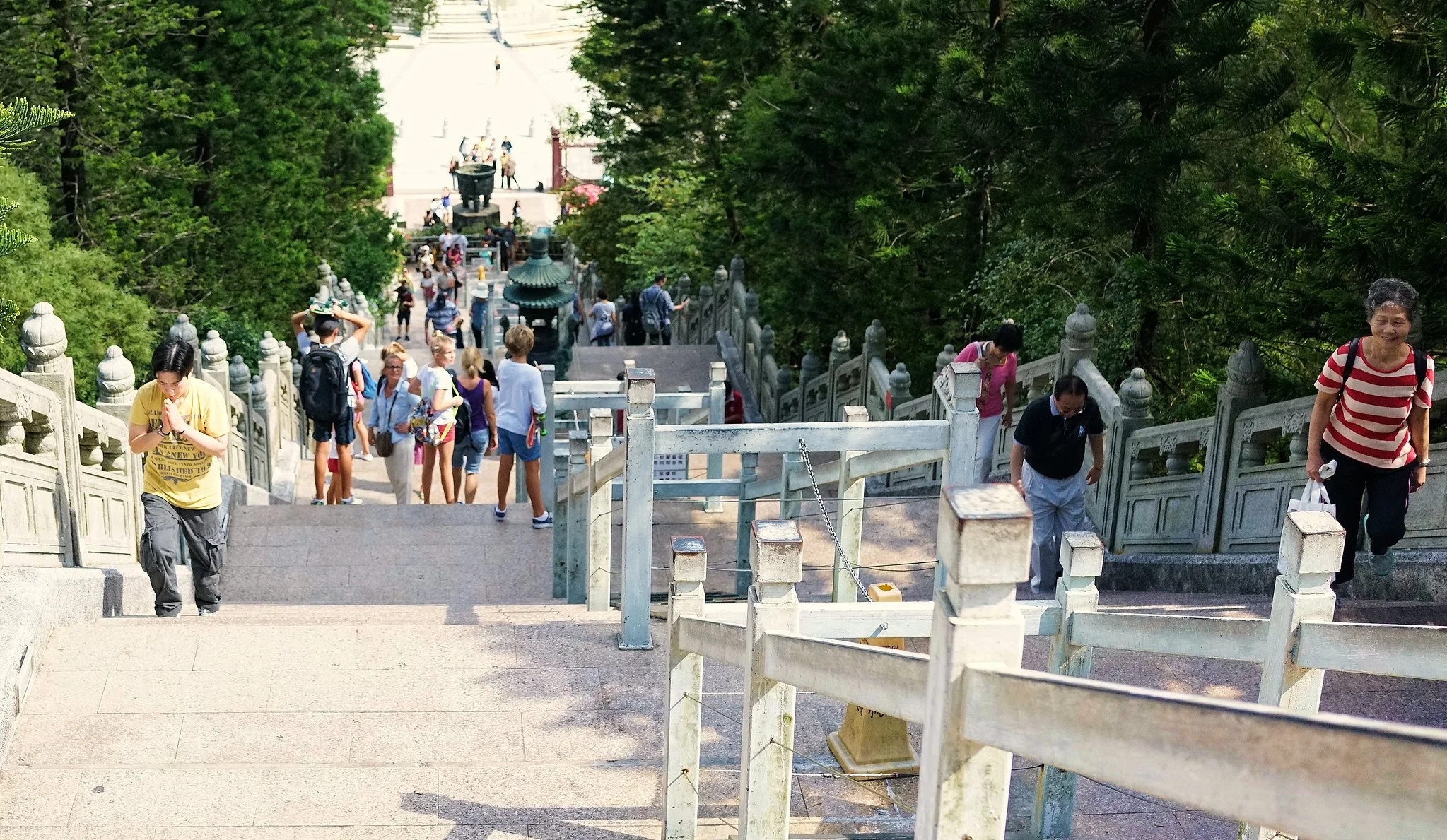 To expand on my theory - here’s the other side - and it’s the one most visitors experience. The overwhelming majority of people who arrive at Ngong Ping today are not Buddhist pilgrims. They are international and local tourists drawn by the cable car ride, the dramatic views, and the chance to see one of Hong Kong’s most iconic landmarks. For them, the steps are not a meaningful ritual; they are an unexpected physical barrier.