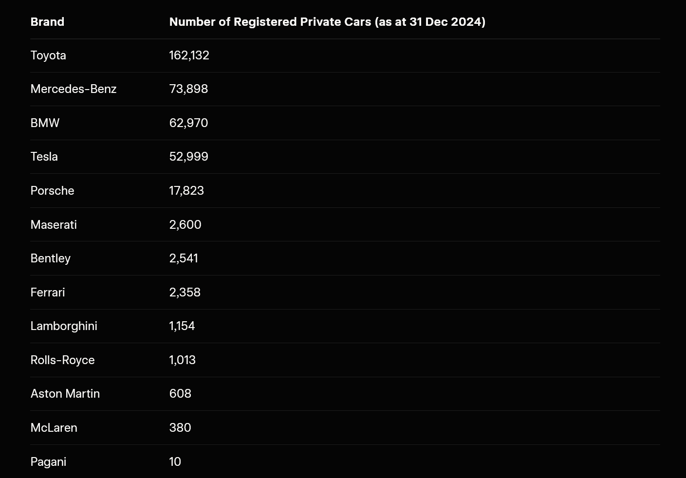 The number of fancy car brands in Hong Kong 2026