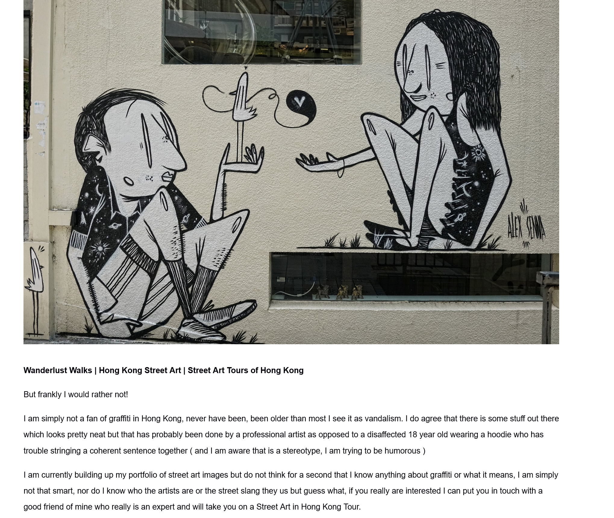 Please do take the time to explore the Wanderlust Walks Hong Kong website and book a couple of tours, Hong Kong is embracing Street Art in a big way and we absolutely need experts like Alex.